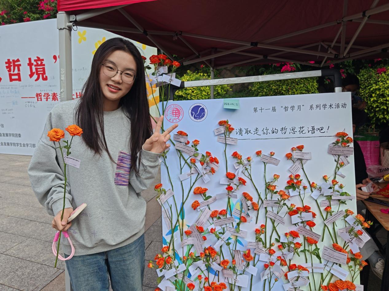 趣味盎然的答题环节与丰厚的奖品,成功吸引了学校不同专业师生的踊跃参与。此次活动以花为载体,让哲学的良好氛围在校园中传递,拓宽了大家思维的深度与广度,进一步引导同学们在生活中认识哲学,提升发现自我、感知世界的意识和能力,树立正确的世界观、价值观和人生观。同时,本次活动也帮助大家在体验哲学思维的多元性之余拓宽自身视野,在哲思绵延中感受中华优秀传统文化的魅力,坚定文化自信。