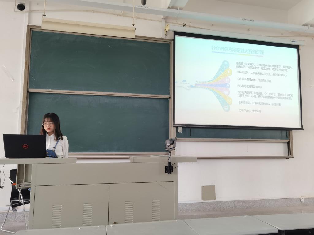 在F4-202教室举办2021年社会调查方案策划大赛赛前动员会。本次动员会邀请了18社会学1班侯雨潼、蔡玲娇、19社会学何家欢三位赛事经验丰富的同学进行分享,团委书记兼辅导员鞠芳、全体参赛学生出席活动。