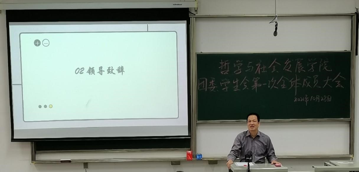 大会在嘹亮的校歌声中拉开帷幕。首先,由李永松致辞。他向参与团委、学生会工作的志愿者表达了感谢,并欢迎21级新生融入团委、学生会大家庭。李永松强调,作为学生,应该做好学生的本职工作,以学业为第一要务,在学业达标的前提下,兼顾学习和学生工作。李永松表示,团学工作人员的身份不仅仅是荣誉,更是沉甸甸的责任。团委、学生会成员不是高高在上的“小干部”、“小领导”,而应当是身边同学学习生活的“表率者”、党方针政策的“宣传者”、解同学之所难,急同学之所急的“服务者”。要以年轻人特有的活力和冲劲对待工作,以团结协作更好服务师生,用奉献意识代替官僚习气。他强调,付出就会有回报,同学们在团委、学生会的经历,在将来进入社会,走上工作岗位后,能更好的适应社会需求,实现自我发展和人生理想。他最后提出,希望大家都能在团委、学生会中获得自己独特的经历。规划好自己的大学生活,正确处理学习和工作的关系,积极参与到学习以外的活动中,只有学习和工作兼得,才是一个合格的学生干部。