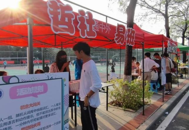 易班学生工作站全体成员的共同努力下,活动顺利开展。摊点设置了“概念大闯关”、“思想的火花”与“现学现卖”三个游戏,具体为猜词、回答哲学思想实验与用现学的社会学思维模式来分析社会现象。游戏内容极具特色,生动丰富——不仅包含了颇具哲社特点的知识库,趣味性十足,还真正做到了学习与欢乐两不误。在参与者进行猜词,描述名词等游戏并取得一定成果后,便可以获得相应的丰富奖品——盲盒,笔记本,书籍等,让各位同学满怀期待地来,心满意足地走。